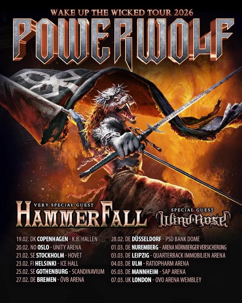 Auch die Special Guests sind keine Unbekannten und können sich mehr als sehen lassen! HammerFall überzeugen mit kraftvollen True-Metal-Hymnen und eingängigen Melodien, während Wind Rose mit epischen Fantasy-Epen und druckvollen Riffs für pure Power-Metal-Power sorgt. Ab Mitte Februar 2026 erwartet euch auf der Wake Up The Wicked Tour sakrale Riten, gewaltige Pyro-Shows, Hymnen vom neuen Album „Wake Up The Wicked“ und zeitlose Klassiker , eine unvergessliche Heavy-Metal-Messe!