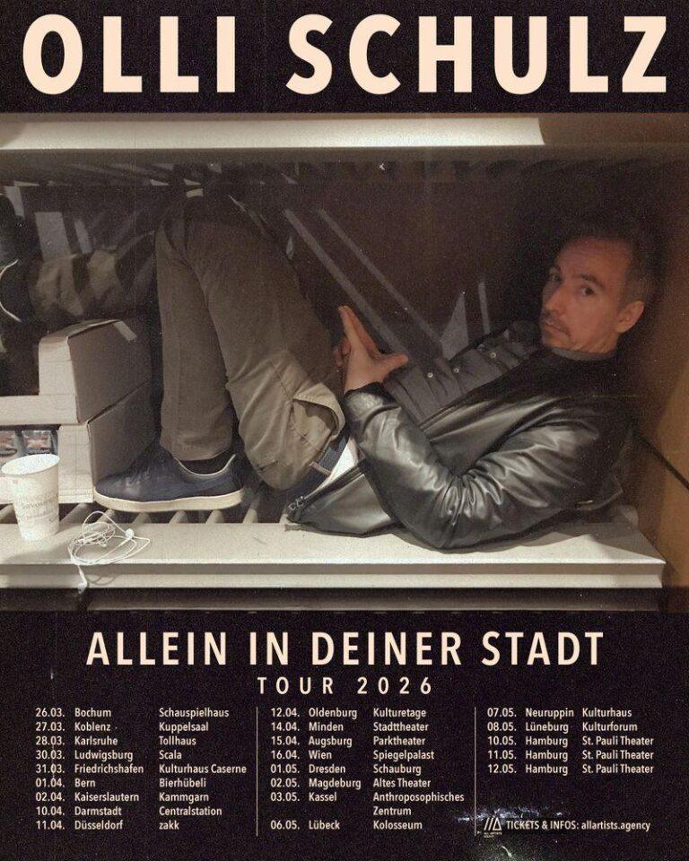 Die Tour startet zunächst in kleineren Städten, bevor im weiteren Verlauf auch größere Spielorte folgen sollen. Weitere Termine sind im Laufe des Jahres angekündigt. Inhaltlich dürfte Schulz neben neuen Liedern auch aktuelle gesellschaftliche Entwicklungen aufgreifen – stets mit seinem eigenen, unverwechselbaren Blick auf die Dinge.